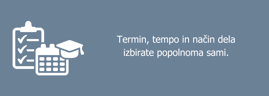 Termine lahko izbirate po lastni želji (možni so tudi vikendi). Do vsebin lahko dostopate kjerkoli in kadarkoli, doma ali v službi. Na platformo se lahko priklapljate v razpoložljivem terminu kadarkoli, brez omejitev. Nekaterim ustrezajo nočne ure, drugim vikendi, tretjim kakšna prosta ura v službenem času, četrtim pa nekaj čisto drugega.