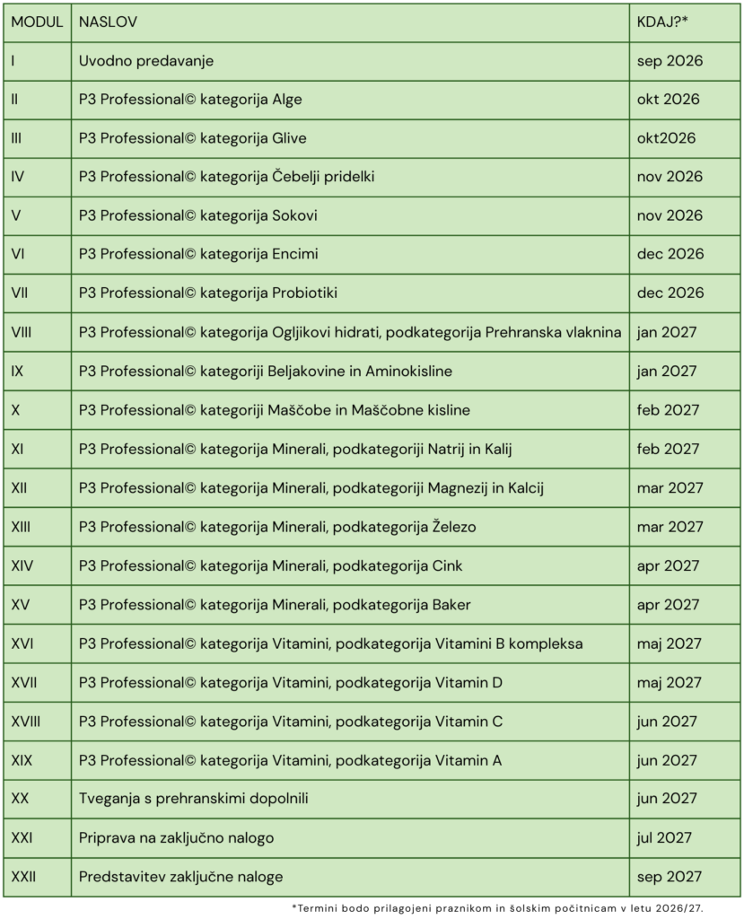 Oglejte si program šole P3 Professional o prehranskih dopolnilih!